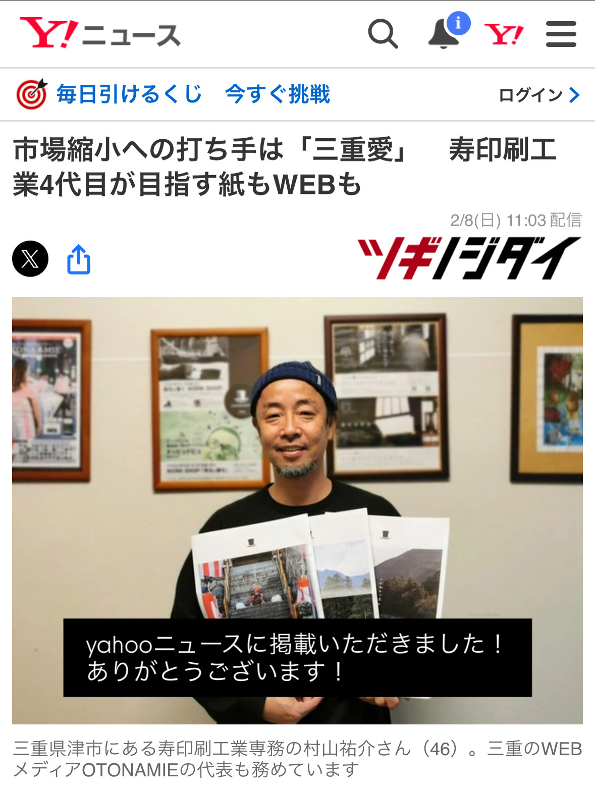寿印刷工業は今年で70周年、WEBマガジンOTONAMIEは10周年。その節目に取材掲載いただけたことを感謝申し上げます。